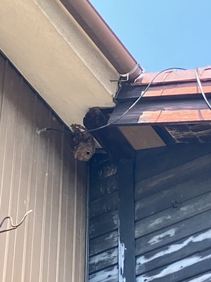 お庭の倉庫内と軒下部分のスズメバチと足長バチの巣を駆除しました!